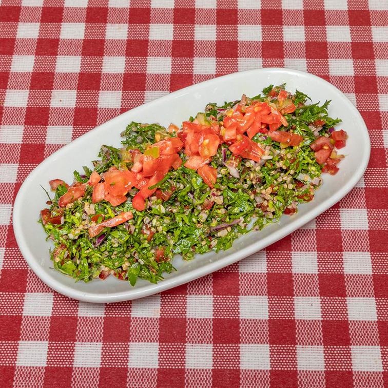 Finely chipped tomatoes, green peppers, parsley and iost pepper with pomegranate molasses